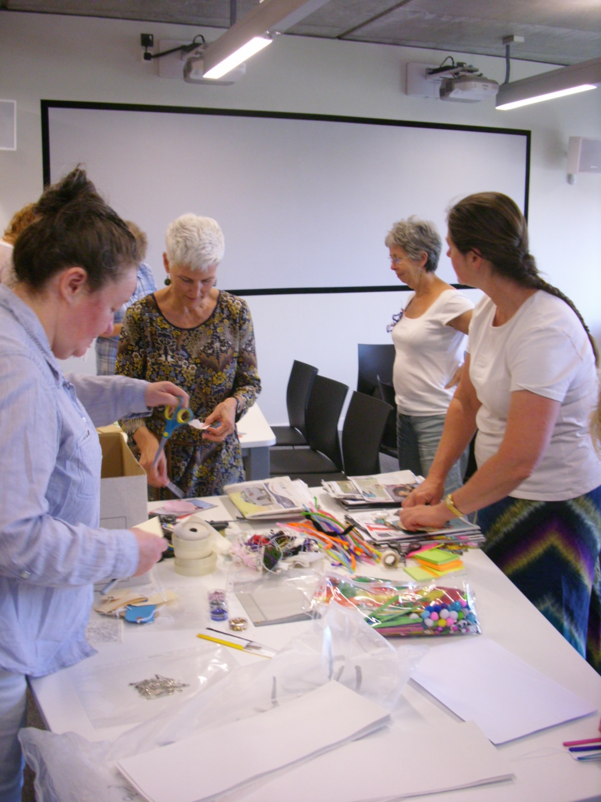 Although some of us had been there for the Friday as well, we started off with (re-)making name tags, really an excuse to see what materials were available to use. I thought it would be very important to have a sort-of ‘break out’ space with making materials in case we would be stuck in our writing endeavours and needed what Gauntlett calls the ‘longer stretch of thoughtfulness’.